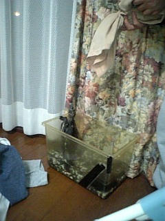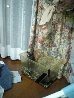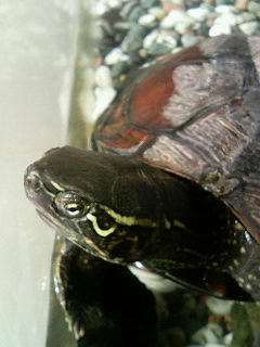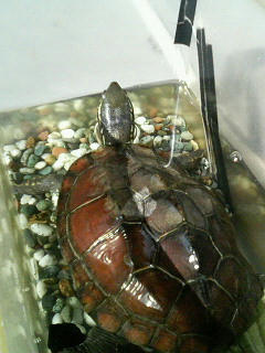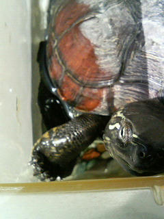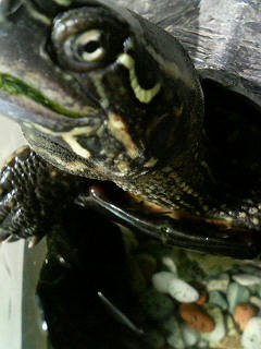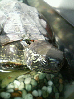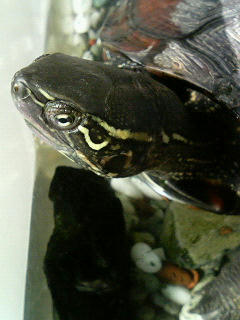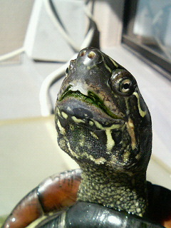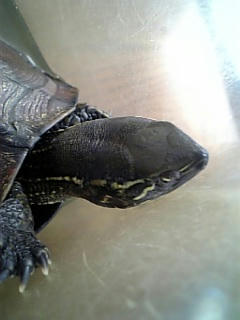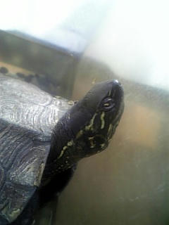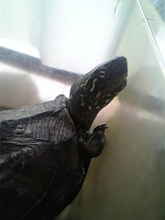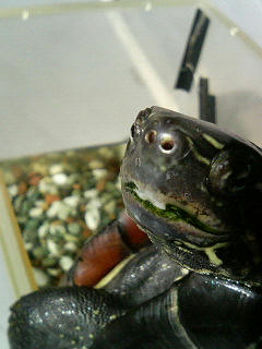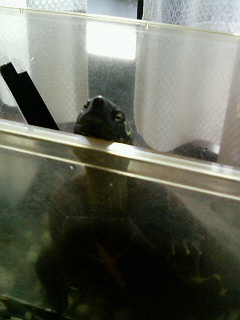 上にいるのは母。母が動く方向に顔を向けてくるカメン。首を一生懸命のばして、真上にいる母の方を見るカメン。↓