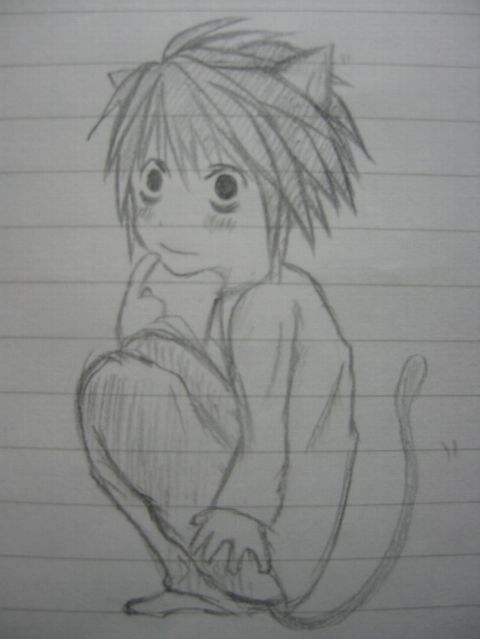 最近落書きしたLたんです。ああああ下手だ。下手すぎる。あーあ。